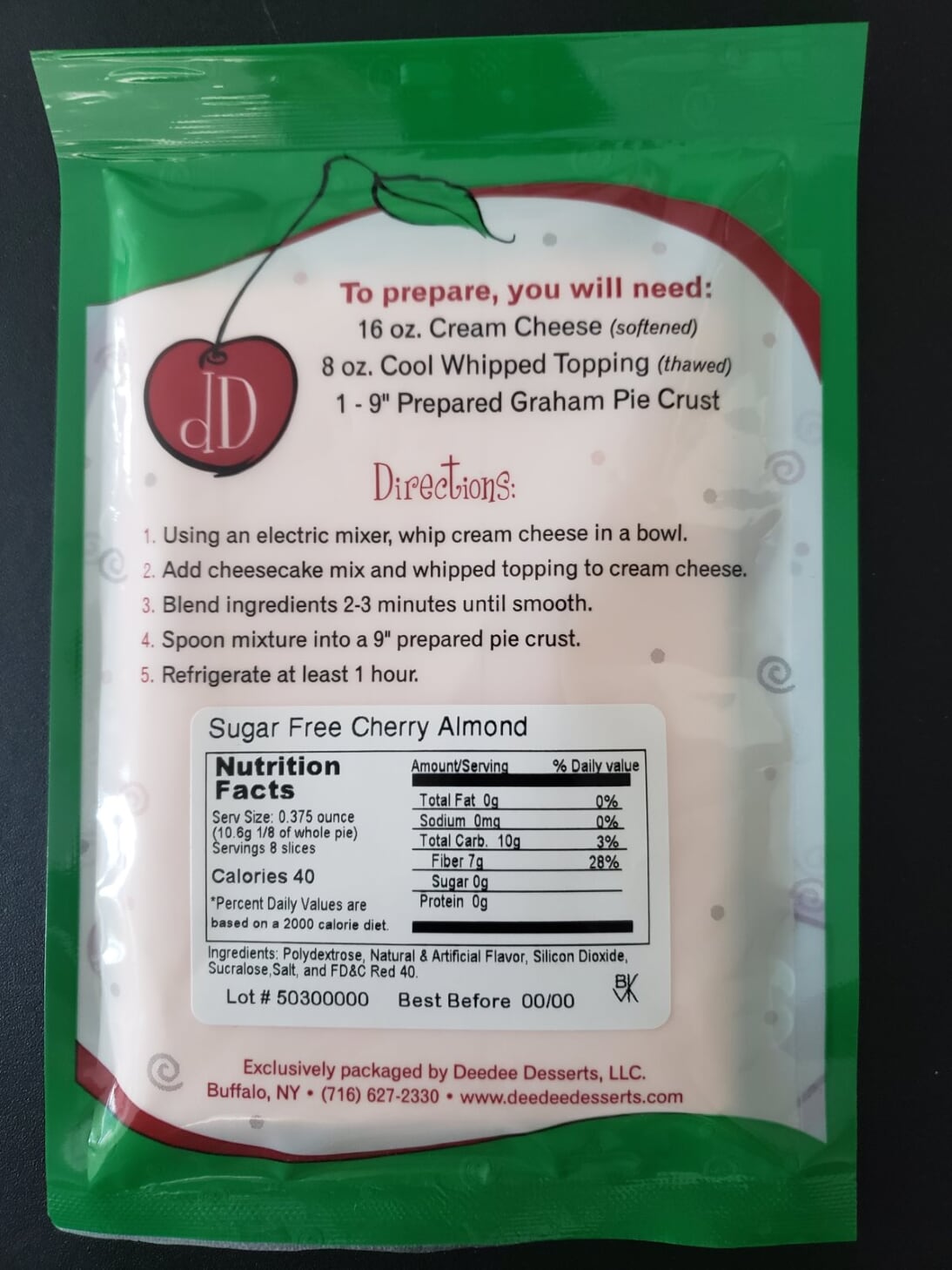 Sugar Free Cherry Almond Cheesecake Mix$6.00 Our Sugar Free version has the same great flavor as our signature Cherry Almond but without the sugar! *Made with artificial almond flavoring. Out of stock Category: Sugar Free Cheesecake Mixes Related products Sugar Free Amaretto Cheesecake Mix $6.00 Add to Cart Our sugar free version of this well sought out flavor. Rich and creamy, smooth and silky, this one is for the true Amaretto lover. *Made with artificial almond flavoring. More... Sugar Free Spiced Pumpkin Cheesecake Mix $6.00 Add to Cart A Spiced Pumpkin Cheesecake Mix that is Sugar Free! A combination of Cinnamon, Ginger and Pumpkin flavoring for a real Holiday Treat! More... Sugar Free Raspberry Cheesecake Mix $6.00 Add to Cart This sugar free version of our Raspberry mix has all the "Razzmatazz" as our regular Raspberry but without the sugar! Mmmm Delicious! More...