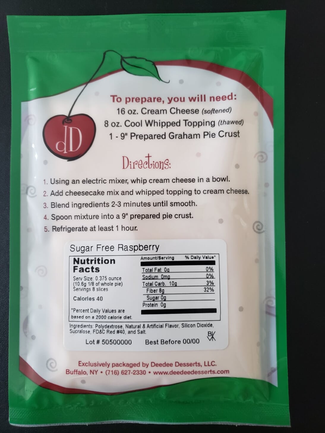 Sugar Free Raspberry Cheesecake Mix$6.00 This sugar free version of our Raspberry mix has all the “Razzmatazz” as our regular Raspberry but without the sugar! Mmmm Delicious! Sugar Free Raspberry Cheesecake Mix quantity Add to cart Category: Sugar Free Cheesecake Mixes Related products Sugar Free Pistachio Cheesecake Mix $6.00 Add to Cart Our Sugar Free Pistachio cheesecake mix is everything that you would expect from a fabulous Pistachio dessert but without the sugar! Absolutely Amazing... *Made with artificial pistachio flavoring. More... Sugar Free Spiced Pumpkin Cheesecake Mix $6.00 Add to Cart A Spiced Pumpkin Cheesecake Mix that is Sugar Free! A combination of Cinnamon, Ginger and Pumpkin flavoring for a real Holiday Treat! More... Sugar Free Caramel Apple Cheesecake Mix $6.00 Add to Cart A Sugar Free Caramel Apple cheesecake mix that has a Granny Smith sour apple flavor topped off with delicious caramel. A real show favorite! More...